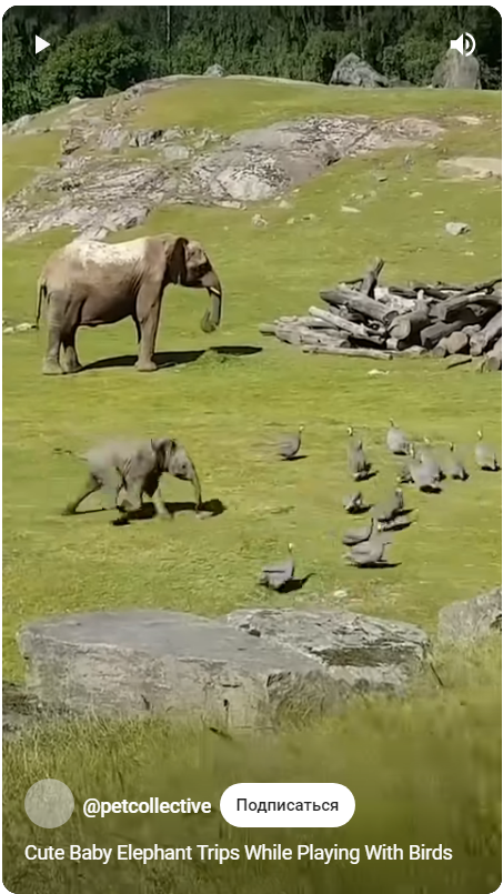 Слоненок бегает за птицами :-)