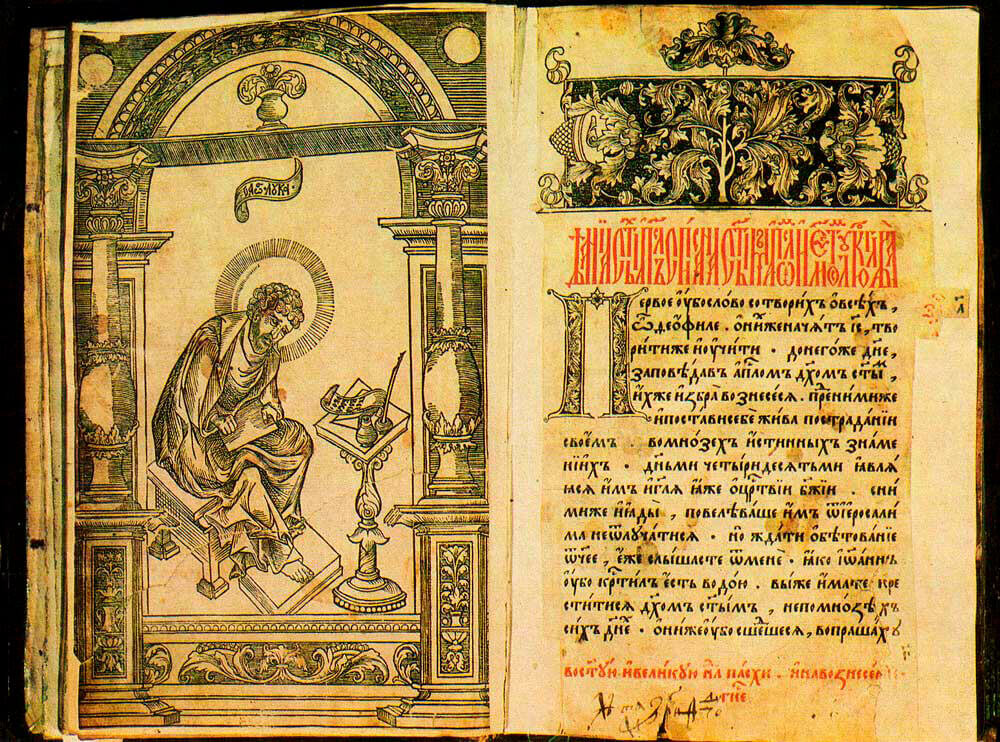 В отличие от своего знаменитого тёзки Иоанна Гутенберга, жившего веком ранее и напечатавшего первую в мире книгу — латинский перевод Библии, Федоров намеревается отдать в печать не всё Священное Писание, а в первую очередь те его части, что чаще всего читаются на богослужениях: две книги Нового Завета «Деяния святых апостолов» и «Послания святых апостолов», а также отдельные псалмы из «Псалтыри» царя Давида и других книг Библии, произносимые в качестве прокимнов и аллилуариев. Именно эти части Библии на церковнославянском языке вошли в книгу «Апостол»