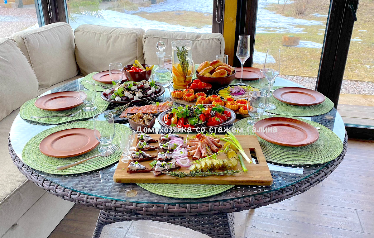 Доска с закусками была приготовлена для выноса к мангалу для наших мужчин. Чтобы им было чем закусить во время приготовления шашлыков 😉.