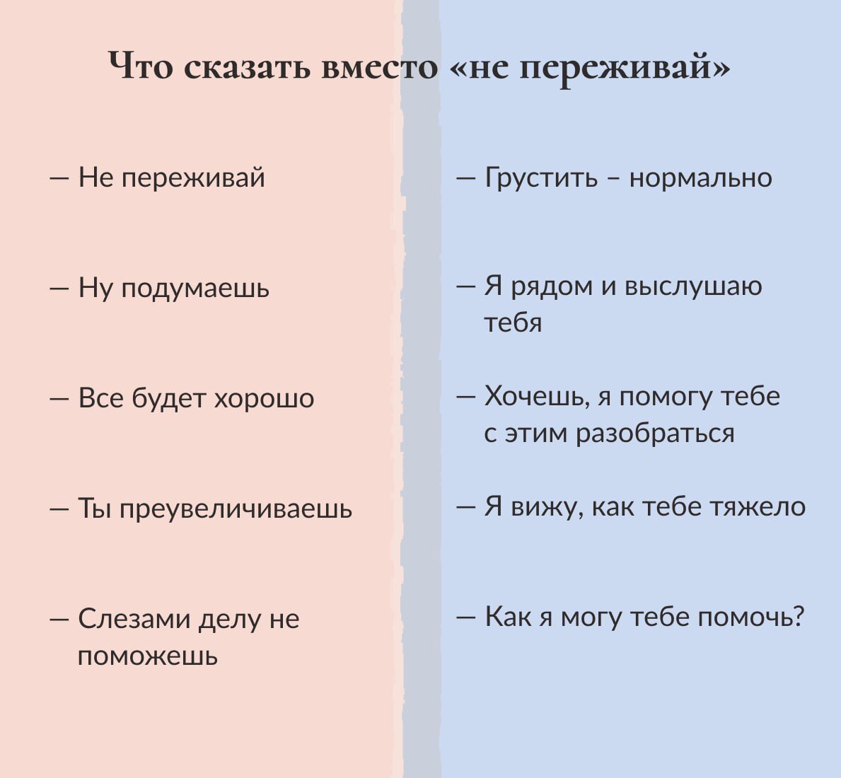 То есть после такой поддержки людям в состоянии стресса или печали кажется, что от них просто отмахиваются, или что их проблема не важна. А значит они начинают чувствовать себя ещё хуже.