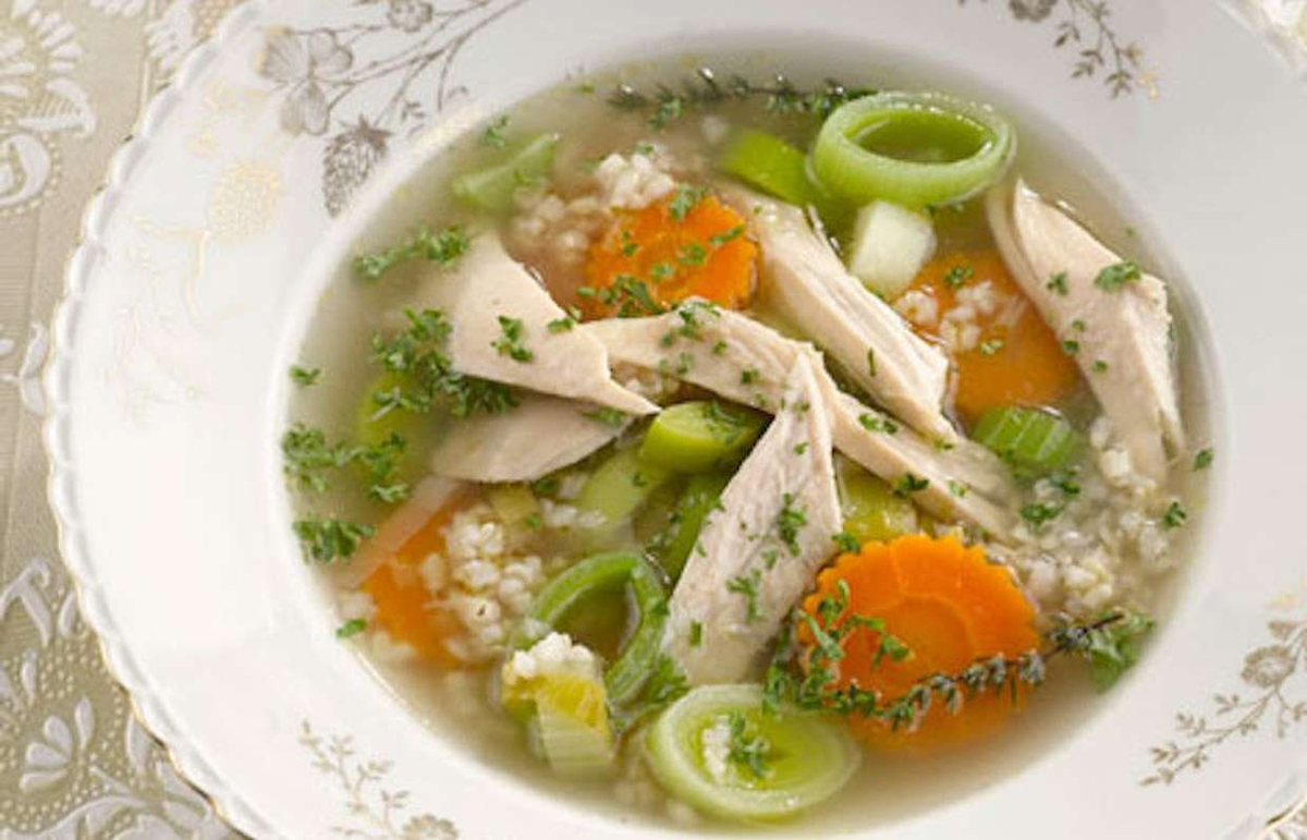 Перенесите курицу и лук в большую кастрюлю. Добавьте морковь, сельдерей, картофель и куриный бульон. Доведите до кипения и варите на среднем огне около 20-25 минут, пока овощи не станут мягкими.
