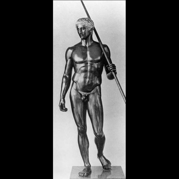 Самый важный факт про него: это визуальное воплощение теории Поликлета об идеальных пропорциях и изображении движения в покое. Прозванный «Канон Поликлета», это своего рода "Витрувианский человек" античности, эталон, с которым все сверялись.