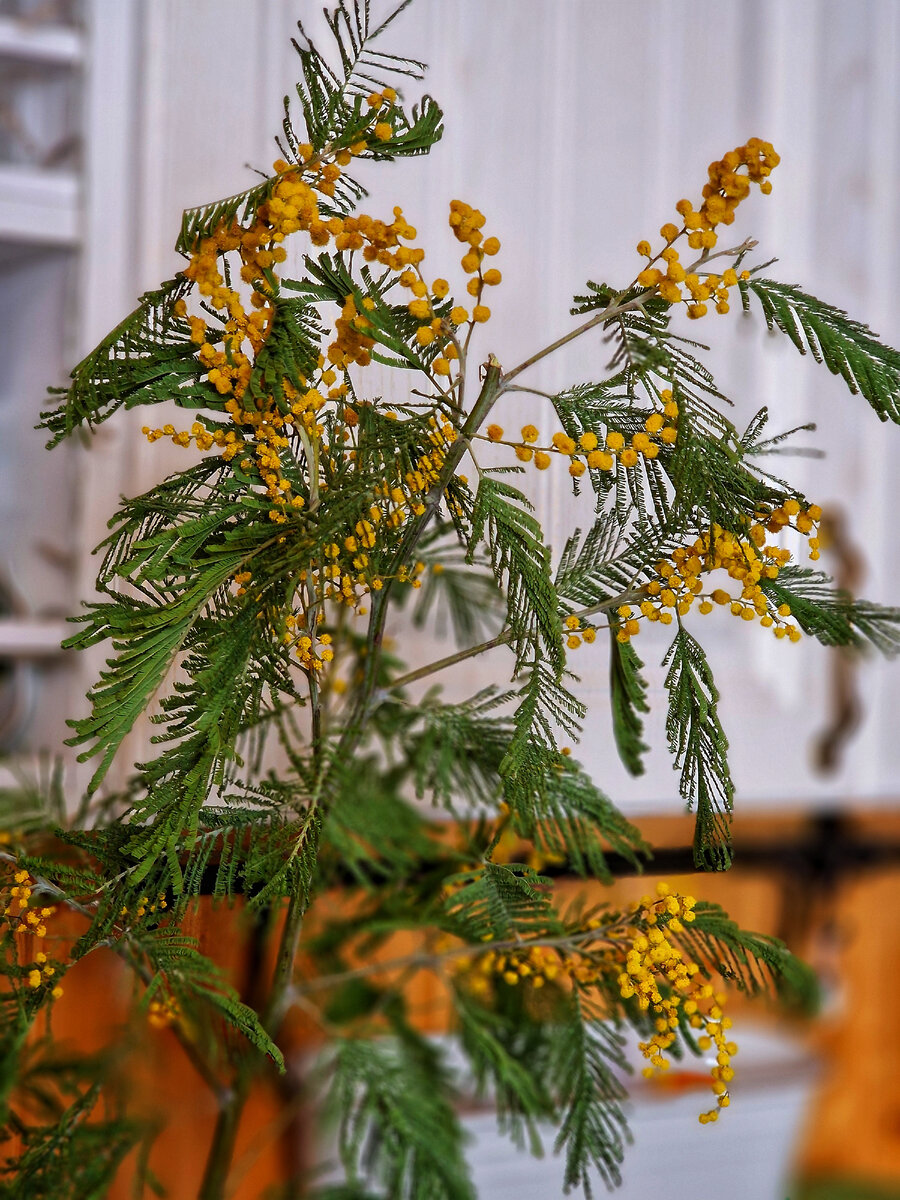 Друзья, приветствую👋. Восьмого числа по пути на дачу попалась нам стоящая на обочине машина с мимозами в багажнике. Мимоза мне нравится, но из-за того, что к нам она добирается спустя большое количество времени после срезки (даже не срезки, судя по слому, кусты эти варварски выламывают и везут в мартовские дни с юга на север) ветви уже почти сухие. Все равно остановились, выбрала я себе 1 веточку боле-менее свежую внешне, 100 руб. за нее отдала и дальше мы помчали. На даче поставила я эту ветвь в воду. А на следующее утро у меня стоял сухарь. Чего, собственно, и следовало ожидать. Чуда не произошло. Воду вылила, пусть так стоит. Сыпаться начнет, выкину. Дни празднично-выходные пролетели как обычно в прогулках близ водохранилища. Рыбаки пока сидят, хотя у берега я проталины выдела. Я наконец-то сподобилась и добралась до своих украшенных на НГ сосен. Какое-то животное (собака наверное) тропинку к лесочку протоптала. Вот я по этой тропке по насту и пробиралась, а потом все равно при
