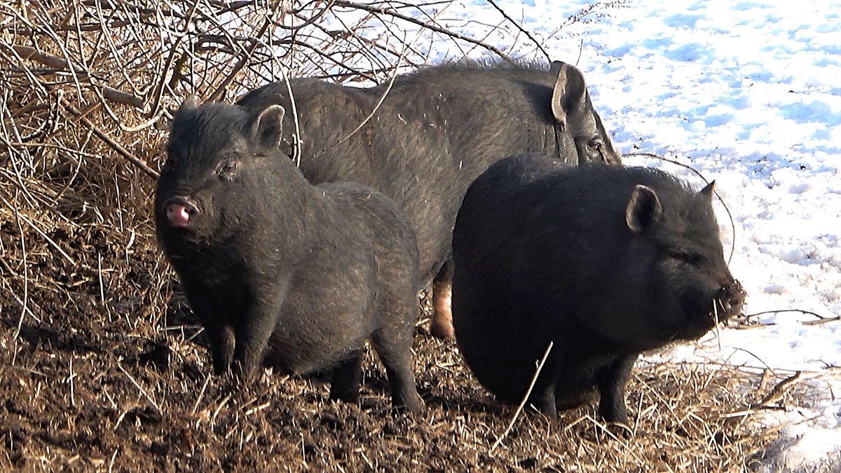 У нас поле внизу, они как коровы и барашки — утром уходят, вечером приходят домой уже сытые. Если их закрыть и кормить, как обычную свинью, будет одно сало... Мы когда их бьем, шкуру с них снимаем, как с барана, потому что сала нет вообще. Одно мясо.