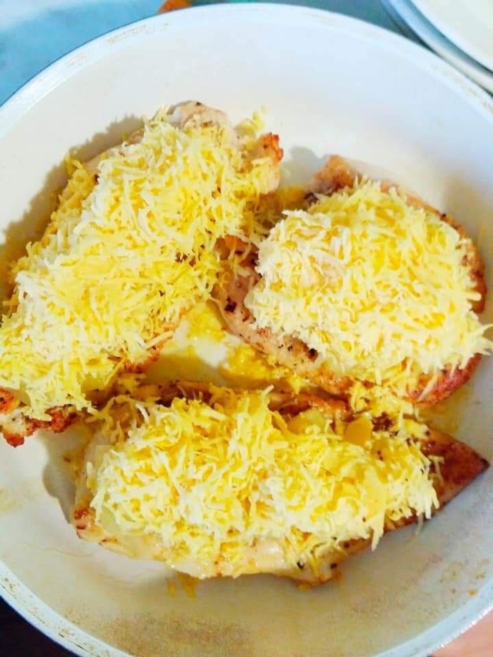 Из любой ситуации можно найти выход. В том числе и в кулинарии. Я рассказывала, как приготовить куриное филе, сделав из него отбивные. Приступила я к процессу, и оказалось, что у сына на кухне нет молотка, для приготовления отбивных. И духовка не работает) Да и зачем она ему) Значит меняем программу. Куриное филе готовим куском. Филе разрезать вдоль, на три части. Слегка отбить тяжелым кухонным ножом. Посолить, поперчить. Панировать в муке. Яйцо не нужно, филе будет достаточно сочным и без него. Обжарить с двух сторон, на растительном масле. Тяжелую сковороду смазать сливочным маслом. Выложить кусочки филе. На каждый кусочек выкладываем ананасы. Сверху - тертый сыр. Блюдо практически готово. Осталось только, придя с работы, поставить сковороду на небольшой огонь, закрыв крышку. Филе и ананасы прогреются, сыр расплавится. Будет очень сочно и вкусно. Не хуже, чем в духовке. А может даже лучше.