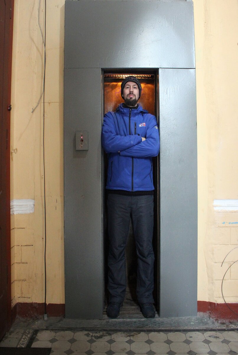 А вдруг кто-то из вас не знал каких размеров функционируют лифты в старых домах Петербурга, подумал я на ночь глядя. Не во всех зданиях, конечно же, но во время фото-прогулок регулярно встречаются. Недавно я на таком ехал, но не запечатлел. Поэтому для примера покажу фотографии 2019 года.