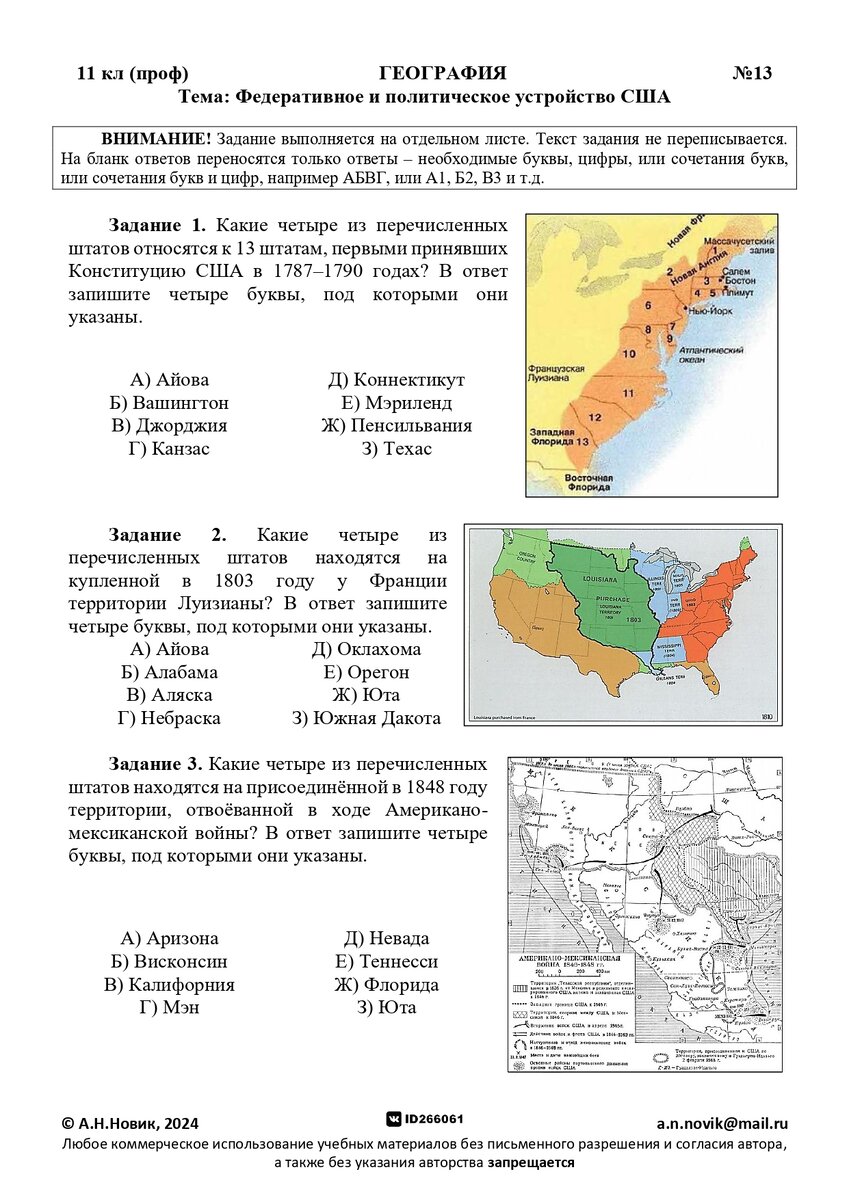 Задания для самостоятельной работы классов с углублённым изучением географии. Возможно использовать как дополнение к основной программе. Задания 1-3, 7-11 на работу с картой федеративного устройства США. При выполнении заданий допускается использование различных источников информации Информацию о найденных ошибках, замечания и пожелания, оставляйте, пожалуйста, в комментариях