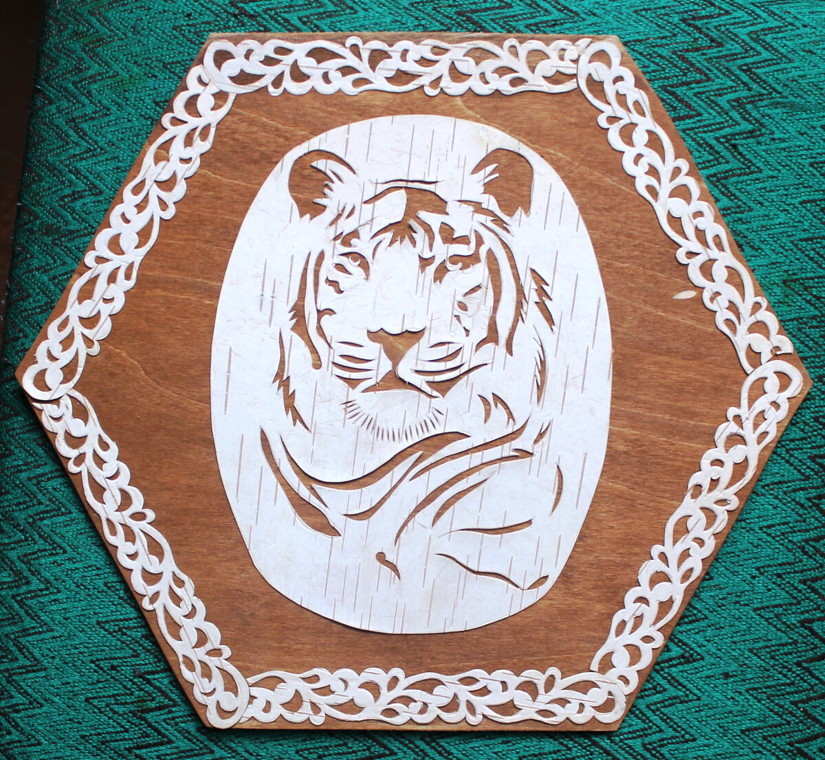 Добрый день, уважаемые читатели моей странички. Я продолжаю рубрику "моё хобби". Сегодня я покажу фотографии "картинок" из бересты выполненных в стиле "прорезание". Для этого береста доводится до нужной толщины, в зависимости от поставленной задачи, наносится рисунок (не карандашом), и острым резцом, уложив на фанеру или другую мягкую подложку, прорезается. Вот, что получается: "Кошкин дом" – подложка, белая бумага. "Гриф" – подложка чёрная бумага. "Цветы" – подложка чёрная бумага. "Тигр" – подложка, тонированная фанера. "Волчонок" – на фанере. "Котёнок" и "Кошка", подложка, чёрная бумага. Хорошего всем настроения!