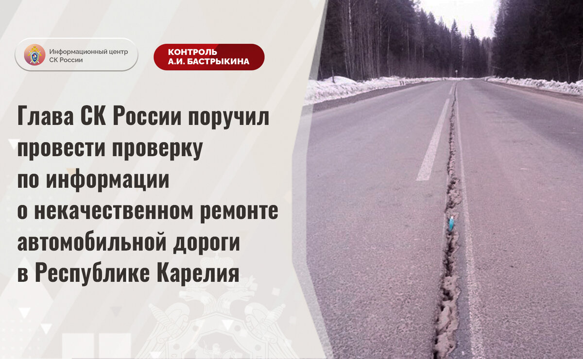 Глава СК России поручил провести проверку по информации о некачественном ремонте автомобильной дороги в Республике Карелия