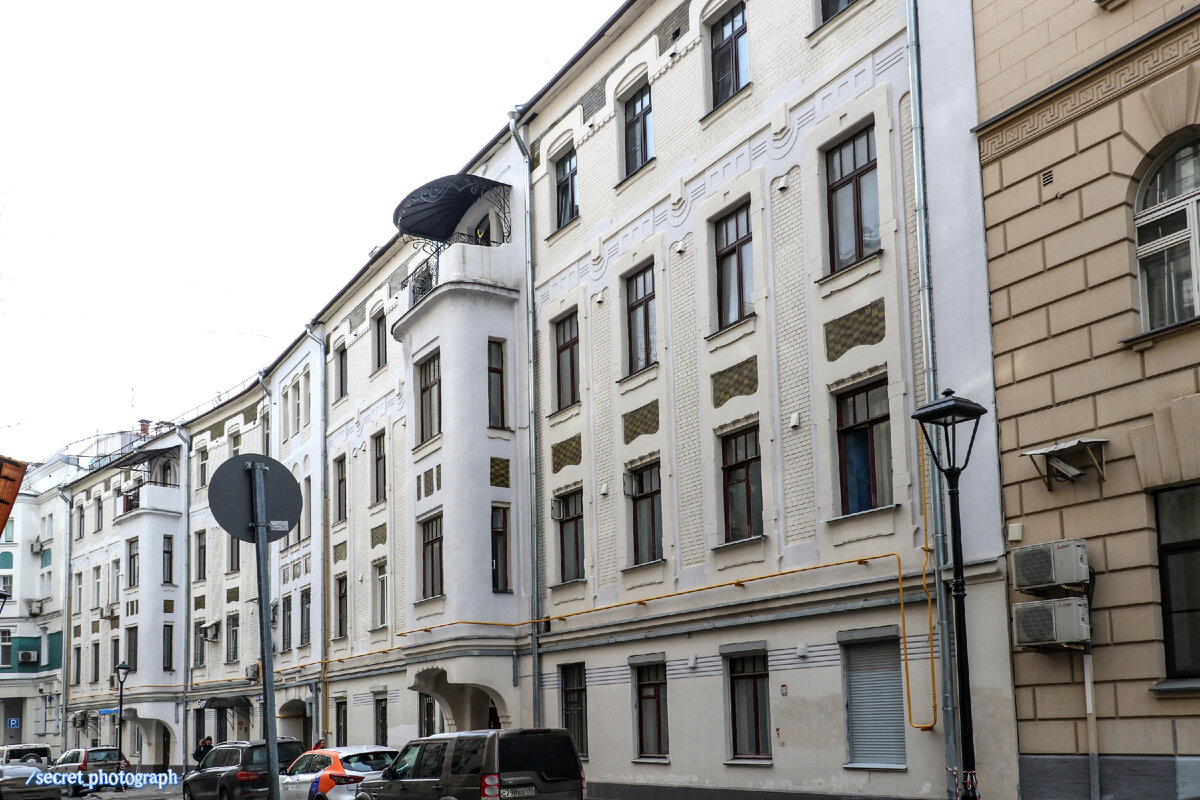 Вот еще один совсем не маленький дом, стоящий на узенькой улочке. Собственно, когда-то улица Жуковского, названная в честь проживавшего на ней основателя отечественной гидро- и аэродинамики Николая Егоровича Жуковского, и улицей не считалась. Была всего лишь Мыльниковым переулком между Большим Харитоньевским и улицей Макаренко. А в 1850-1870-х тот переулок и вовсе скромно именовался Кривым.