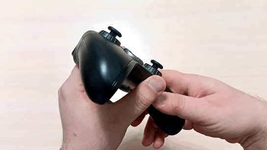 Материал же курков более гладкий, чем у корпуса контроллера, но соскальзывания пальцев с них замечено не было. Опять же, нажимаются курки весьма приятно.