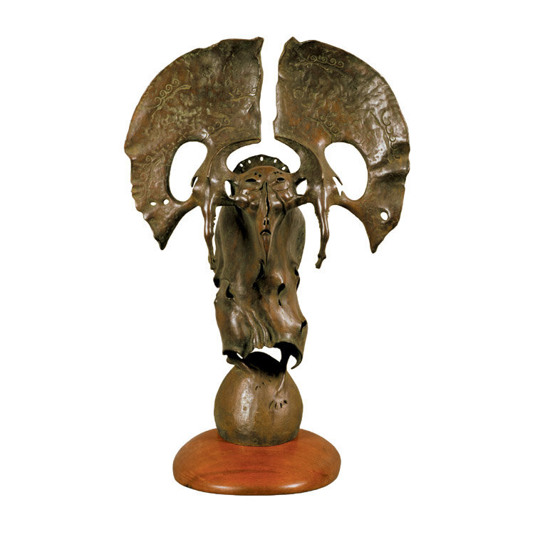Несколько лет назад по линии Общественной палаты Российской Федерации я долетел до этого далекого от Москвы заповедного края. Забайкалье. Чита. Уникальная природа. На территории Забайкальского края водораздел трех великих российских рек: Енисея, Лены, Амура. Здесь отбывали свою ссылку декабристы. Запасы золота, серебра, меди, лития, каменного угля. Крупные тепловые электростанции. Гостеприимный народ. А еще на стенде этого региона в 75 павильоне Форума “России” (ВДНХ) представлены три скульптуры нашего современника Даши Намдакова. Бурят по национальности сам он родом отсюда. Из небольшой деревни Укурик, что в Хилокском районе. Отец, дед и предки Намдакова по мужской линии - древний род кузнецов-дарханов. У народов Забайкалья человек, работающий с огнем и металлом, это элита. Считалось, что «дарханы» посланы самим Небом или “Тэнгери” (отсюда древняя религия “тэнгрианство”). Их почитали не меньше шаманов. Возле изголовья больного клали нож или топор, сделанный руками дархана. Это защищало от злых духов, и больной излечивался. Даши Намдаков вот таким образом продолжил династийную линию своих предков, работая с огнем и металлом, зная свое родословие до 17-го (!) колена. Создавая свои завораживающие скульптуры, Даши обращается к символам и образам народных «онгонов» — «хранителей местности». Его творчество - смесь традиции и авангарда. Находясь в дне сегодняшнем, скульптор вспоминает древние истории и мифы и “пересказывает” их языком будущего.