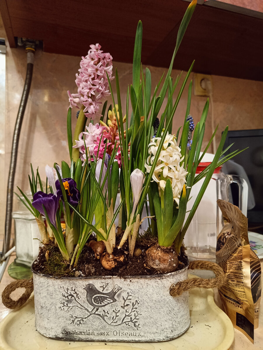 В преддверии празднования 8 марта мне моя дочь Александра сделала замечательный подарок ,- мастер класс по созданию композиции из луковичных цветов в Дом -Пион.Встречала нас замечательная девушка Ангелина ,предлагая выпить чашечку вкуснейшего чая, чем , естественно сразу воспользовались все гости,заходившие с лёгкого морозца в этот цветочный рай.Для создания композиций были предложены всевозможные кашпо,ведёрки,прикольные лейки.Наполнив выбранные ёмкости грунтом и включив свою фантазию каждый мог создать себе в подарок уникальную мини клумбу, которая способна радовать своей весенней красотой не один ,и не два дня,а несколько недель .Делюсь своим цветочным настроением со своими подписчиками.