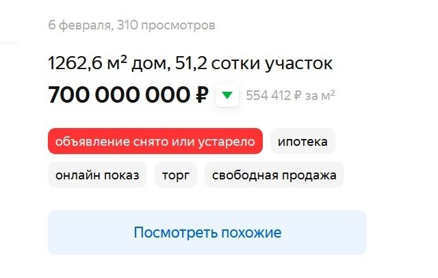 Как выглядит дом, который продавали за 700 миллионов рублей