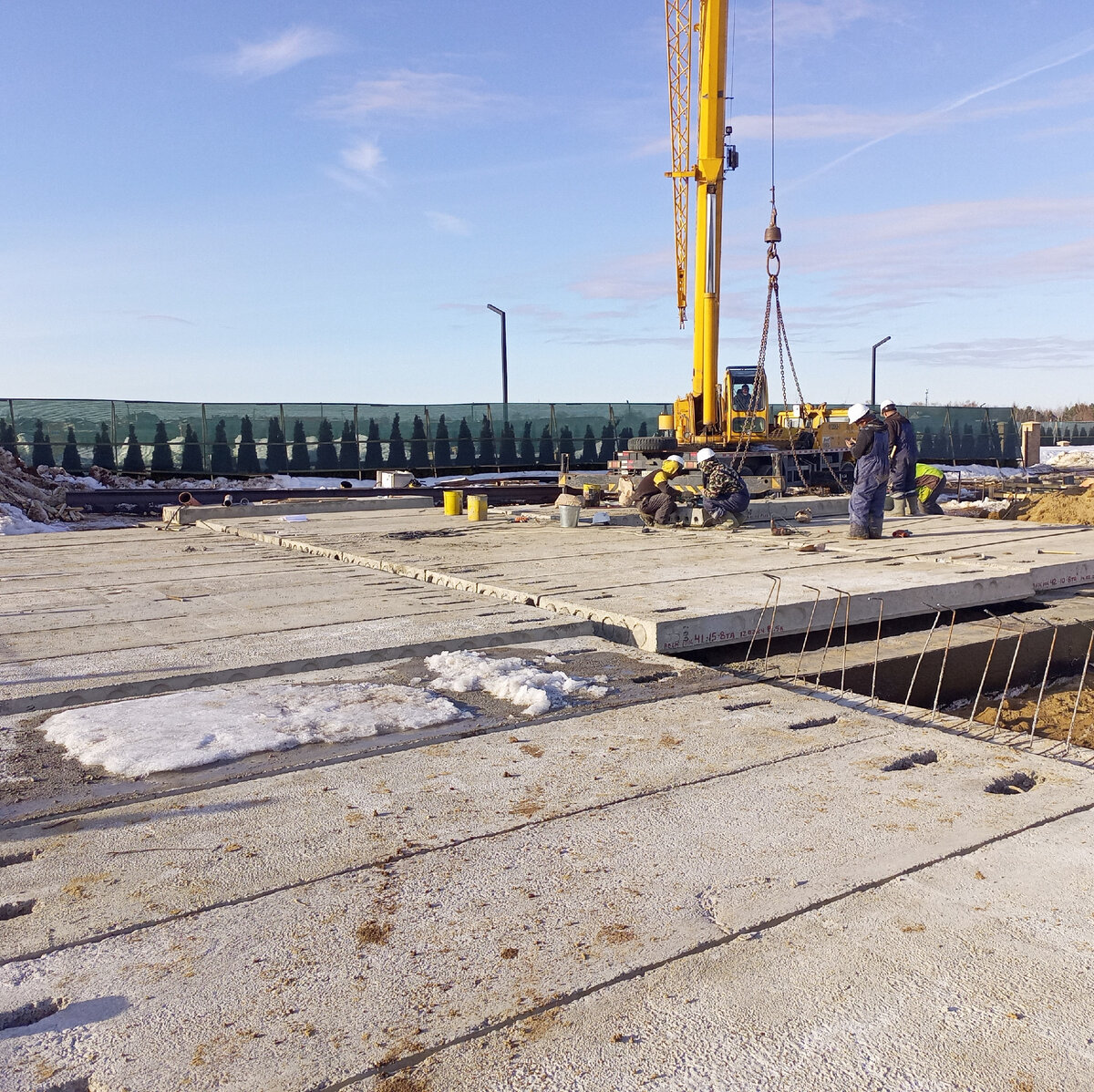 Одновременно мы строим здесь 6 типовых домов по проекту «Марсель». На выходных на одном из объектов закончили монтаж плит перекрытия и установку связей. Мы сразу заполняем швы раствором монтажной смеси @perfekta М200, добавляя в него противоморозную добавку @osnovit «Сэйфскрин». Она не дает воде в растворе замерзнуть и позволяет равномерно набрать прочность.