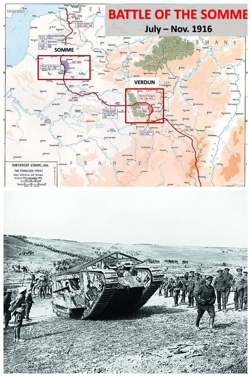 Зимой 1915-го года Уинстон Черчилль, в то время Первый лорд Адмиралтейства, убедил британское правительство, что кидать под пулеметы тысячи англичан на полях Франции — пустая затея. Он предложил высадить десант неподалеку от Константинополя, захватить его, вывести Турцию из войны и открыть проливы для коммуникации между Россией и союзниками. Эта операция закончилась катастрофически. Британцы сумели десантироваться и укрепится на берегу. Но турки сдержали англичан. В результате погибло около 300 тысяч британцев. *Важно тут то, что в операции участвовали силы австралийцев и новозеландцев. Это была первая крупная битва с их участием. Бессмысленность этой бойни и гибель соотечественников привели к тому, что Австралия и Новая Зеландия решили пересмотреть свои отношения с Британской империей. *До сих пор день 25 апреля (день высадки десанта) в этих странах отмечается как национальный день поминовения. Битва на Сомме Еще летом 1916 года состоялась битва на Сомме — самая масштабная битва Перво