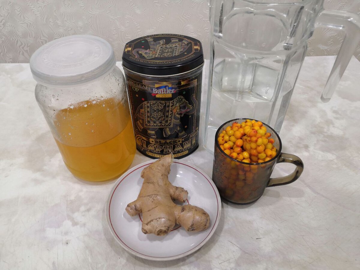 Очень вкусный и ароматный домашний чай. Ингредиенты: Если облепиха замороженная, то дадим ей немного растаять и перетрём толокушкой половину ягод. Нарежем корень имбиря. Наберем кипятка в чайник или небольшую кастрюльку. Добавляем в кипяток облепиховое пюре, целые ягоды и имбирь. Добавляем чёрный чай и мёд. Перемешиваем и даём настояться 7-10 минут. Перемешиваем ещё раз. Ароматный облепиховый чай готов. Сладость можно регулировать сахаром или мёдом. Приятного чаепития!
