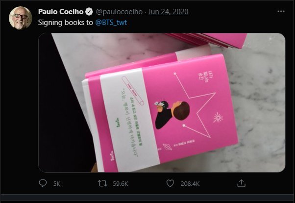Пауло Коэльо рассказал, что потерял некоторых подписчиков из-за поддержки BTS. Однако, это его не обеспокоило, и он сказал, что продолжит поддерживать BTS!