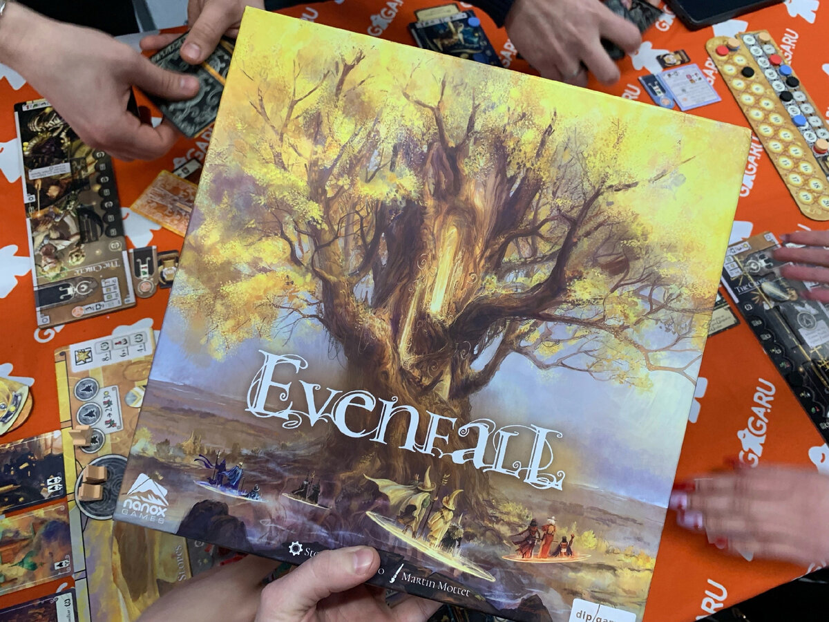 Evenfall лично для меня был поводом посетить GamesDay - я неоднократно рассказывал о моей любви к "Сезонам", которые входят в топ моих любимых игр (в отличие от упомянутой ранее Res Arcana - во многом за счет элемента гонки), и Лихолетье (ИМХО) представляет собой игру, которая вобрала в себя все лучшее, что есть и в Аркане, и в Сезонах. Действительно, все, кто сели играть на GamesDay согласились, что игра, как говорится в тусовке, "огнище огненных огней", ракета-бомба-петарда, и ее однозначно нужно брать всем и каждому.