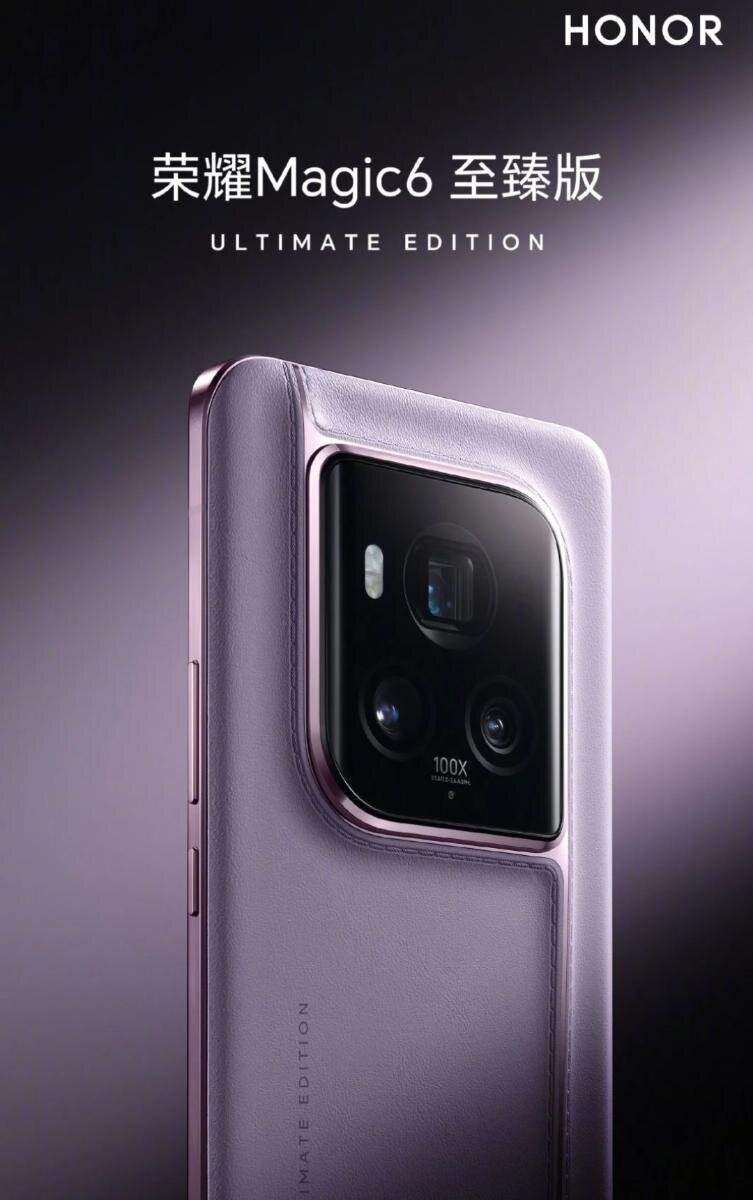 Honor подтвердила, что на следующей неделе, 18 марта, в Китае состоится запуск новых продуктов. Бренд уже официально анонсировал три устройства: Honor Magic 6 Ultimate Edition, Honor Magic 6 RSR Porsche Design и ноутбук Honor MagicBook 16 Pro. Сегодня компания опубликовала официальный постер, на котором представлен дизайн Honor Magic 6 Ultimate Edition. Кроме того, были раскрыты некоторые ключевые особенности этого устройства. На изображениях, опубликованных брендом, Honor Magic 6 Ultimate Edition представлен в двух цветовых вариантах: Sky Purple и Rock Black. Камера устройства имеет уникальный модуль, состоящий из трех объективов и светодиодной вспышки. При более подробном рассмотрении видна надпись, которая обозначает что в состав камеры входит телеобъектив с перископом, обеспечивающий цифровой зум в 100 раз. Смартфон имеет четырехугольную OLED-панель на передней панели. Судя по всему, на экране будет присутствовать вырез, как у Honor Magic 6 Pro, в который, вероятно, будет встроена