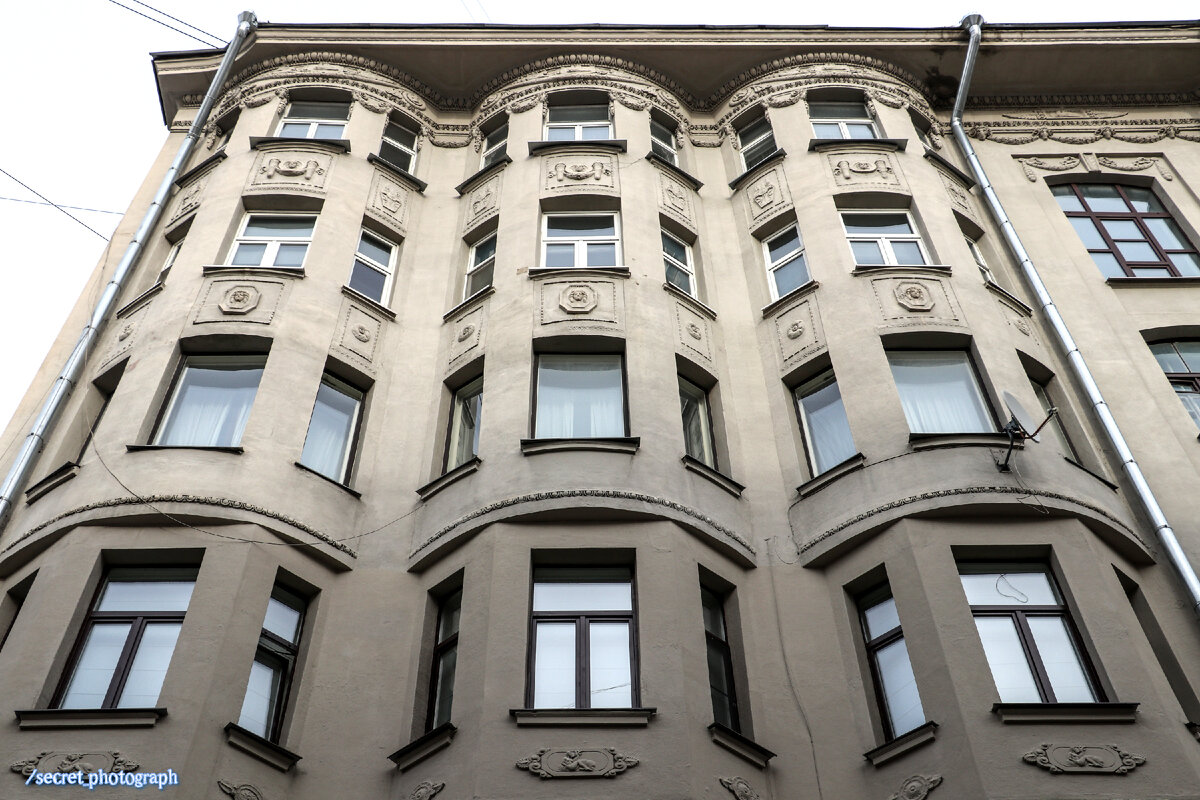 Дом под рюмкой, выстроенный для Якова Михайловича Филатова архитектором Валентином Дубровским, мы все знаем. А этот доходник на улице Жуковского и сам как будто напоминает не то граненый стакан, не то установленные штабелями пивные бочонки благодаря гирляндам эркеров, притиснутых друг к другу. К сожалению, это еще одно замечательное здание внутри Садового кольца, о котором очень мало известно. Но показать его все же хочется. Тем более что дом этот считался элитным, жилье в нем могли себе позволить лишь весьма обеспеченные люди. Возвел его в 1911 году уже знакомый нам архитектор Густав Августович Гельрих. Заказал эту монументальную шестиэтажку инженер-технолог Роман Григорьевич Кравец. Заказал в дар своему сыну Роману Романовичу, а после окончания работ вся семья Кравцев в нем и поселилась. Остальные квартиры собственного дома они сдавали внаем. При этом Роман Григорьевич слыл знатным домовладельцем, имея еще доходные дома в Большом Харитоньевском и Малом Козловском переулках. Наверное,