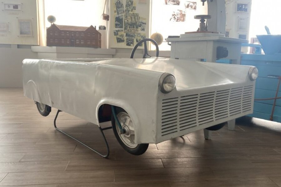 Этот крошечный электрический родстер был изготовлен школьниками в одном из кружков Павлысского лицея имени Сухомлинского на стыке 60-70-х годов прошлого столетия. Он рассчитан на двух подростков или одного взрослого. В конструкции электромобиля использованы узлы и агрегаты серийных автомобилей и мотоциклов, выпускавшихся в то время в СССР. Так, в движение он приводится модифицированным электрическим стартером от «Москвич-400», который питается от пусковой батареи емкостью 96 Ач. Интересно, что родстер имеет бортовую сеть на 6 Вольт. Сегодня многие автопроизводители хвалятся, что их электромобили и гибриды имеют режим управления одной педалью. Этот же принцип был реализован на этом самодельном родстере более 50 лет назад. Но единственная педаль активировала механические тормоза, замедлявшие только заднюю ось. Электромобиль запускался тумблером на торпедо и по умолчанию двигался с одинаковой скоростью. Другой переключатель на приборной панели отвечал за фары и фонари. К сожалению, информ
