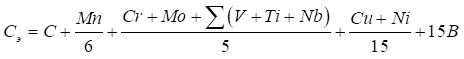 Эквивалент углерода низкоуглеродистых и низколегированных сталей (Сэ) рассчитывается по формуле: