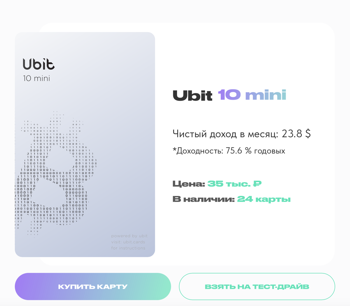Одно из ключевых преимуществ карты Ubit Mini заключается в том, что она позволяет вам ежедневно наращивать мощности благодаря автоматическому реинвестированию. Это ускоряет процесс накопления мощностей и предоставляет новую механику для сохранения денег. Многие люди не привыкли откладывать средства, потому что легко тратят их на повседневные нужды. Например, человек получает зарплату в 50 000 рублей, тратит их на еду, бытовые мелочи и к концу месяца остаётся без денег. Приобретая карту Ubit Mini, вы можете пополнять её на любую сумму, будь то 1000, 5000 или 10000 рублей. Тогда вы понимаете, что, переложив эти средства в Ubit Mini, то есть в добычу биткоина, ваши 5000 рублей начнут приносить доход сразу же. Вряд ли вы бы инвестировали такую сумму в недвижимость или готовый бизнес, поскольку для большинства интересных инвестиционных инструментов эта сумма слишком мала. Деньги, сохранённые в том же агрегатном состоянии, в котором они были получены (например, в рублях) легко тратятся на м