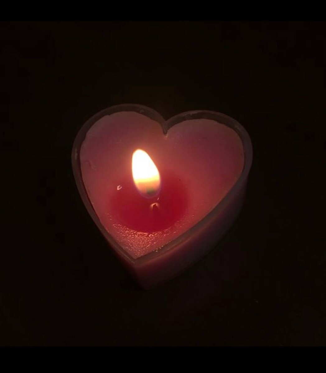 На столе стоят цветы подаренные им. Горит свеча изготовленная тобой.
