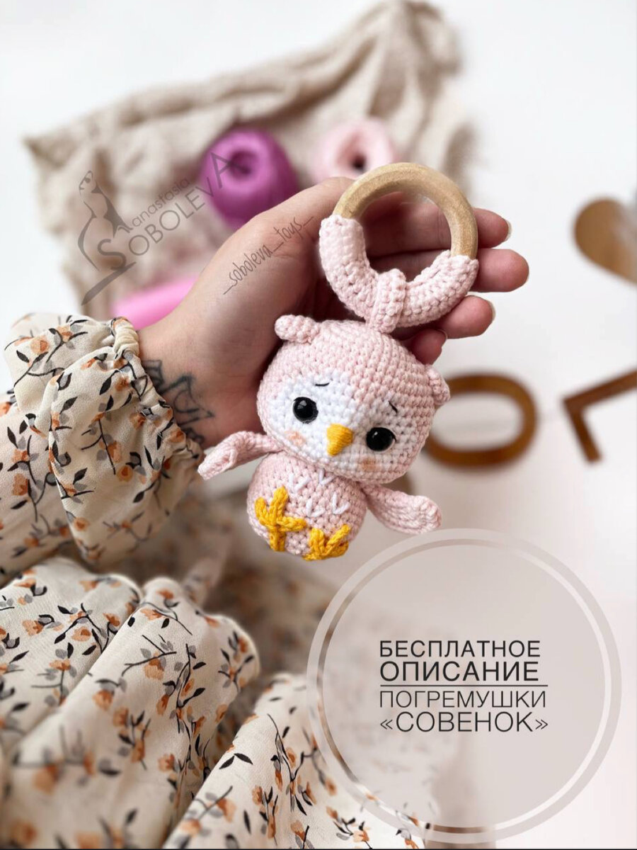 «Совёнок» погремушка для новорожденных, бесплатный мастер класс