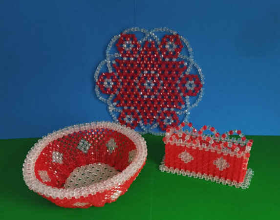 Изделия из бусин увлекли женщину. Она делает фруктовницы, конфетницы, салфетницы, подставки под горячее. Также в её арсенале есть сувениры, игрушки, брелки. Многие изделия придумывает сама, создавая для них схемы.