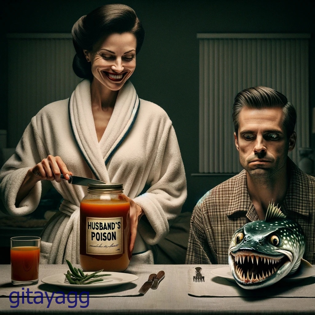 Парочка целеустремлённо шла по его следу. Почему жена настолько хочет его убить? Какие же дамы кровожадные. Его друг вон свою половинку не собирается лишать жизни, а просто заберёт все деньги. Постойте-ка....Так вот почему он на рыбалке столько времени проводил! Не рыбалка это была. Он предавался нехитрым радостям с его супругой! Вот же гад!