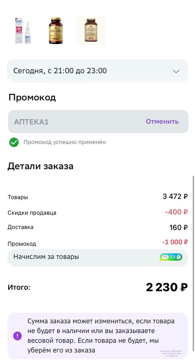 Скидка 1000 р от 3000 р на аптеки в мегамаркет! 🔥Работает на повторный заказ ❗️❗️❗️ Работают и на самовывоз (бесплатно), и на доставку (платная, около 160 руб) Промокоды Аптека / Аптека1 / Аптека1000 Пробуйте разные варианты, не все могут работать Работают по ссылке https://shp.pub/6wut2e?erid=2SDnjdkPqjW Промокоды работают до 17.03.2024 либо до исчерпания фонда акции Но лучше поторопиться, фонд акции быстро иссякает 😉 Промокоды работают и на первый заказ, однако советуем воспользоваться более выгодными промокодами на первый (все три промокода работают на аптеки (и доставка, и самовывоз), проходят и на рецептурные препараты)👇 Все скидки и цены актуальны на момент публикации статьи! Чтобы не пропустить крутые скидки подпишись на наш телеграмм канал 😉 Всем мяу ✋