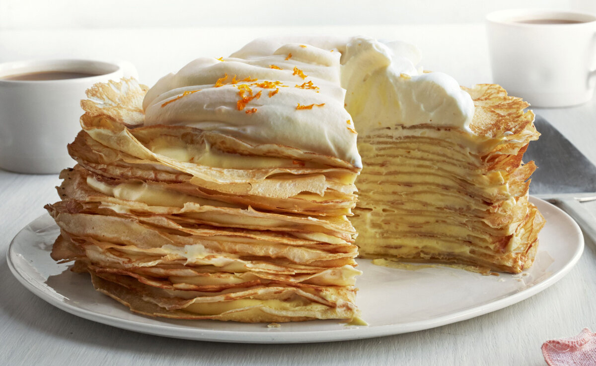 В преддверии Масленицы этот рецепт от бывшего повара, а теперь просто замечательной хозяйки Нины Горюновой станет дополнением к блюдам праздничной недели. Процесс приготовления торта очень прост, а бесподобное сочетание шоколада и апельсина придает этому нежному торту восхитительный аромат. Ингредиенты: для блинов: 0,5 л молока (3,2%), 150 мл минеральной газированной воды, 4 яйца, 5 ст. л. тростникового сахара, 6 ст. л. какао-порошка, 50 г сливочного масла, 200 г пшеничной муки;