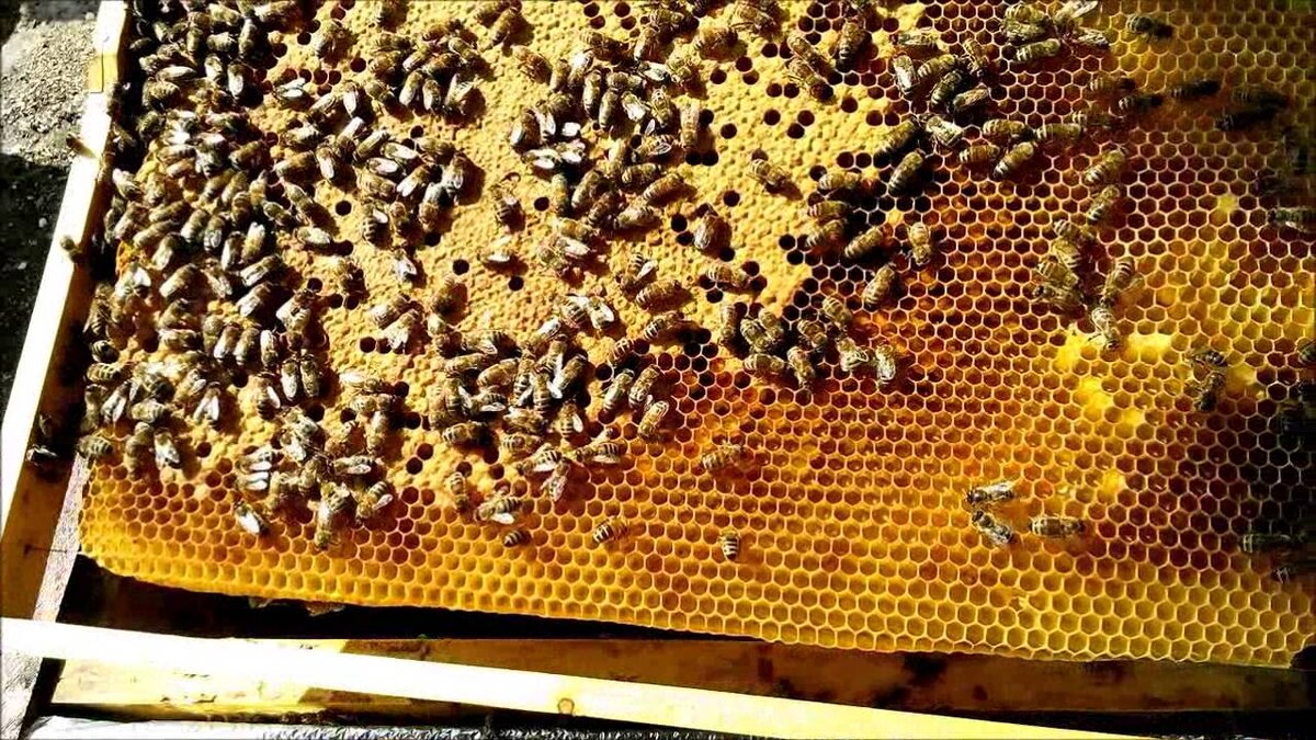 Если в центре гнезда после зимы осталась рамка со старыми, черными сотами и она уже занята расплодом, то рамку сдвигаем на край гнезда, как только выйдет расплод, пчёлы ее зальют мёдом, после чего её можно будет откачать, а далее отправить на перетопку.