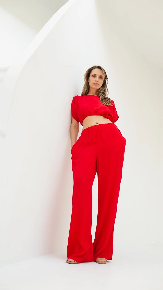 Образ №5 Симбиоз расслабленности и роскоши в красных брюках