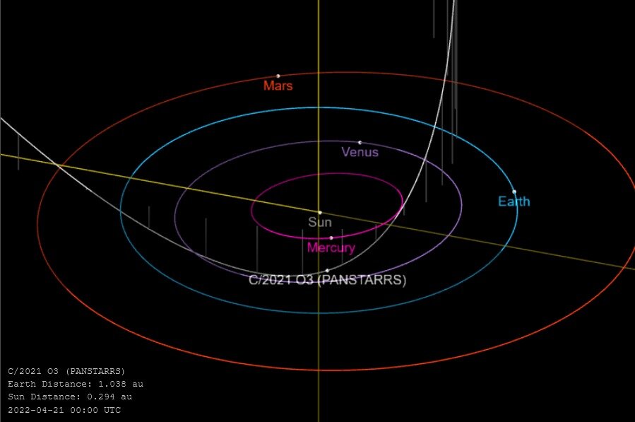 14 марта к Земле на расстоянии 200 миллионов километров приблизится комета C/2021 O3 (PanSTARRS) с «оторванным» хвостом. Об этом сообщает Казанский федеральный университет. Комету можно будет увидеть в любительский телескоп. Предположительно это комета облака Оорта, которая была обнаружена в 2021 году. Комета движется по очень вытянутой эллиптической орбите. Скорей всего, ее хвост не будет примыкать к телу. При этом хвоста может быть не видно совсем, ведь комета приближается к Земле. Поэтому он будет направлен по лучу зрения наблюдателей. Комета состоит изо льда и пыли, при приближении к Солнцу ветер начинает «выбивать» пыль и газ, так образуются хвосты. Хвост всегда расположен в противоположной стороне от Солнца. Когда комета удаляется от звезды, то он начинает двигаться впереди.