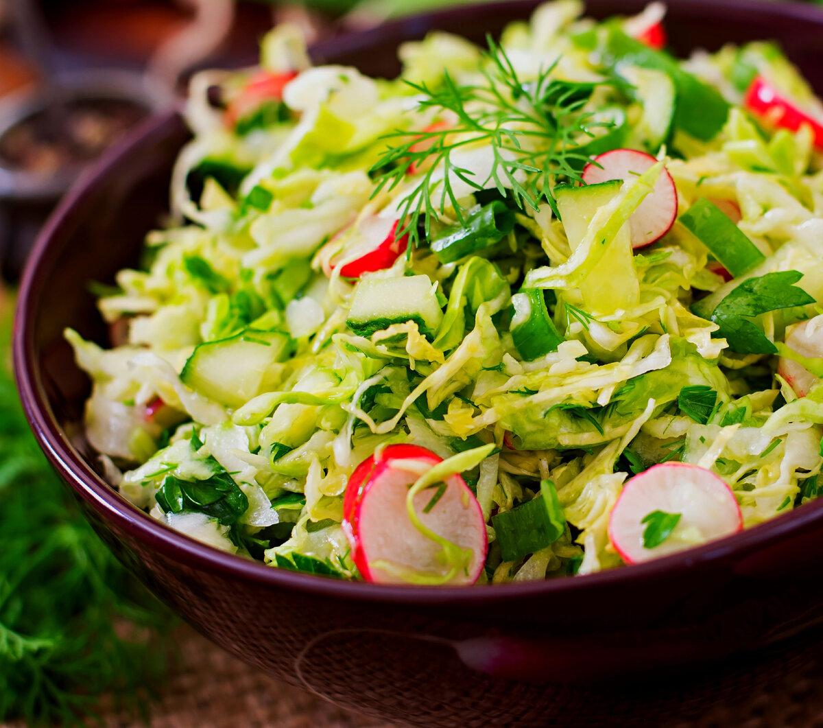 Очень лёгкий и простой в приготовлении салат: Ингредиенты для салата: Для заправки: Приготовление салата: Тщательно помыть и очистить все ингредиенты для салата. Нарезать все продукты кусочками, капусту мелко нашинковать. Выложить всё в глубокую посуду. Приготовление заправки: Помыть укроп и почистить авокадо. Сверху влить масло, соль, лимонный сок и перемолоть в блендере до однородной массы. Заправить овощи соусом! Приятного аппетита! 🌿 Подписывайтесь на канал! Новые публикации каждый день. Фото подготовлено с помощью freepik.