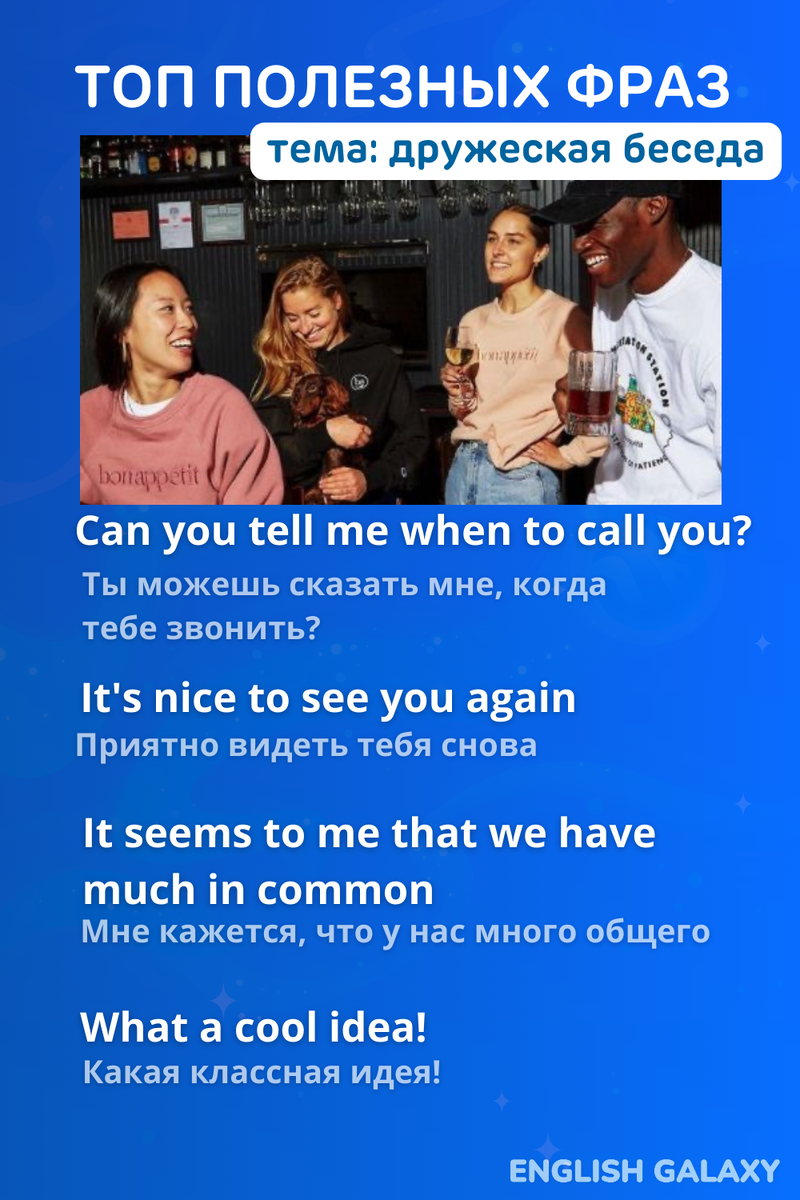 Друзья, если учить новые слова в контексте или в составе полезных фраз, то так вы запомните их быстрее. А знания сохранятся на более длительное время. Больше разговорных фраз и полезных диалогов в нашем разговорном в курсе