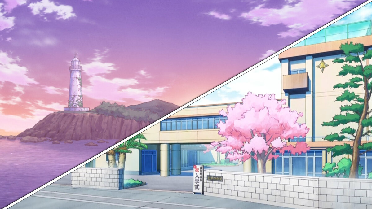 Тайтл - повседневка. Поэтому основные действия происходят в школе и на ключевой локации Маяк.