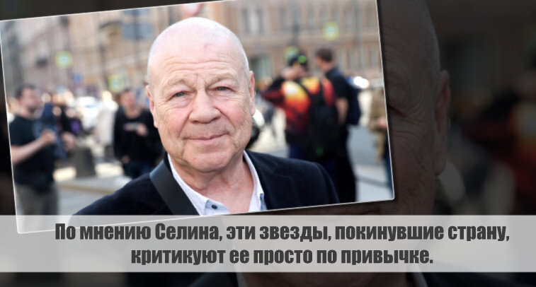 Согласно Селину, в период перестройки и послеперестроечного времени все отечественное подвергалось грязному обличанию. Однако с того времени многое изменилось, и в России появилось множество причин для гордости. Но по словам Селина, некоторые люди до сих пор предпочитают ругать свою родную страну, вместо того чтобы гордиться ею. Он считает, что Галкин, Смольянинов и их ровесники выросли в эпоху, когда модно было хвалить все американское и критиковать все русское. Однако эти времена уже давно прошли, и сейчас Россия вышла из кризиса, достигла заметных успехов на мировой арене. Селин уверен, что эмигрировавшие звезды продолжают ругать свою страну просто по привычке.