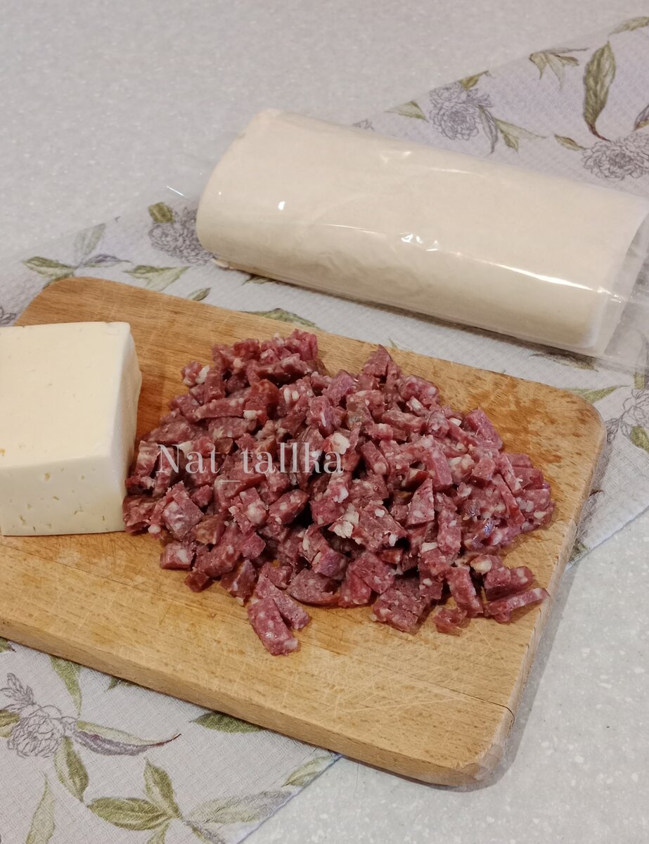 Для приготовления палочек со вкусом пиццы нам понадобятся : 🍕 Слоеное без дрожжевое тесто 1 пачка (500 гр) 🍕 Сыр твердый 100 гр 🍕 Колбаса варено - копчёная 100 гр (можно заменить на отварное мясо, копчёную курицу и т.д.) 🍕 Томатная паста или кетчуп 3 чайные ложки 🍕 Любые специи 1 чайная ложка Колбасу мелко порезать, сыр натереть на крупной тёрке . У меня один длинный пласт теста. Делю его на 2 равные части . Раскатываю каждый пласт теста размером 35 х 40 см. Одну часть теста смазываю томатной пастой и посыпаю специями. На томатную пасту равномерным слоем распределяю начинку. Накрываю вторым пластом теста. Прижимаю и слегка прикатываю скалкой. Ножом для пиццы нарезаю тесто на полоски шириной 2 см. Каждую полоску скручиваю. Перекладываю на противень застеленный пергаментом . Выпекаю 35-40 минут при температуре 180-200 градусов , ориентируйтесь на свою духовку. Палочки получаются хрустящие, с ярким вкусом пиццы. Можно кушать как в теплом, так и в холодном виде. Приятного аппетита