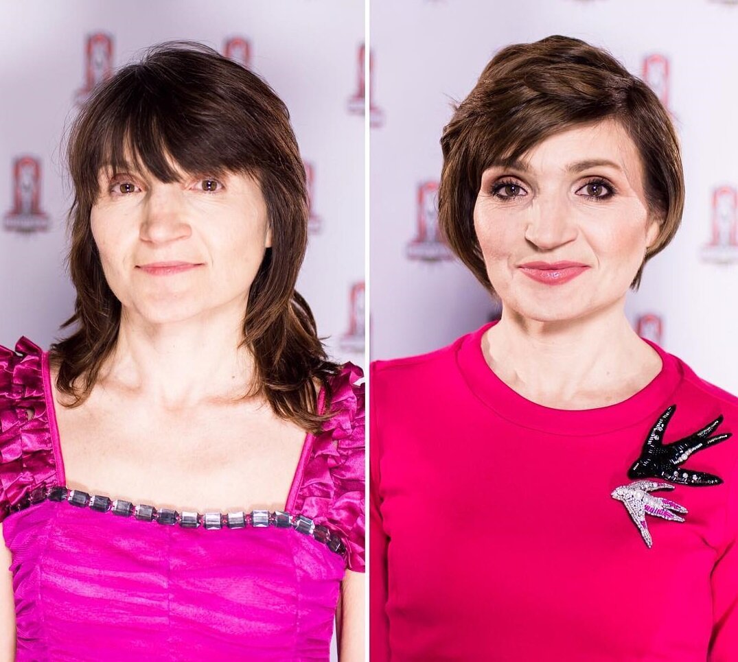 Есть женщины с карими глазами, которые игнорируют макияж, полагая, что для выразительности лица им достаточно того, что дала им природа. Но как меняются женщины, когда подчёркивают свои карамельные или ореховые глаза с помощью подводки или дымчатого макияжа! Рассмотрим на примере преображения 11 женщин на «Модном приговоре». 1. До преображения у этой дамы зрелого возраста глаз вообще не было видно. Их скрывала чёлка, а макияжа не было совсем. Стилисты и в визажисты взяли дело в свои руки: причёску подправили, глаза накрасили, красиво оформив веко нежным розовым под цвет одежды. И почти другой человек! 2. Такие черты бывает боязно «перегреть» избыточным макияжем. Но здесь стилисты всё сделали красиво, поэтому на девушку ПОСЛЕ приятно любоваться. Маленькие глаза стали больше и выразительнее благодаря лайнеру и розовым теням. Не стоит игнорировать и переоформление бровей из ниточек в модные широкие и чёткие, что немаловажно для гармонии лица. 3. Стилисты поменяли тип контрастности внешнос