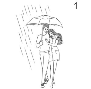 Через неделю в почтовом ящике, который Она каждый день проверяла утром и вечером, нашлось письмо. Её сердце радостно забилось. На белом конверте тонкими линиями был сделан рисунок, на котором стояли под зонтом парень и девушка, и шёл дождь, а в правом, верхнем углу конверта стояла аккуратно выведенная цифра 1.