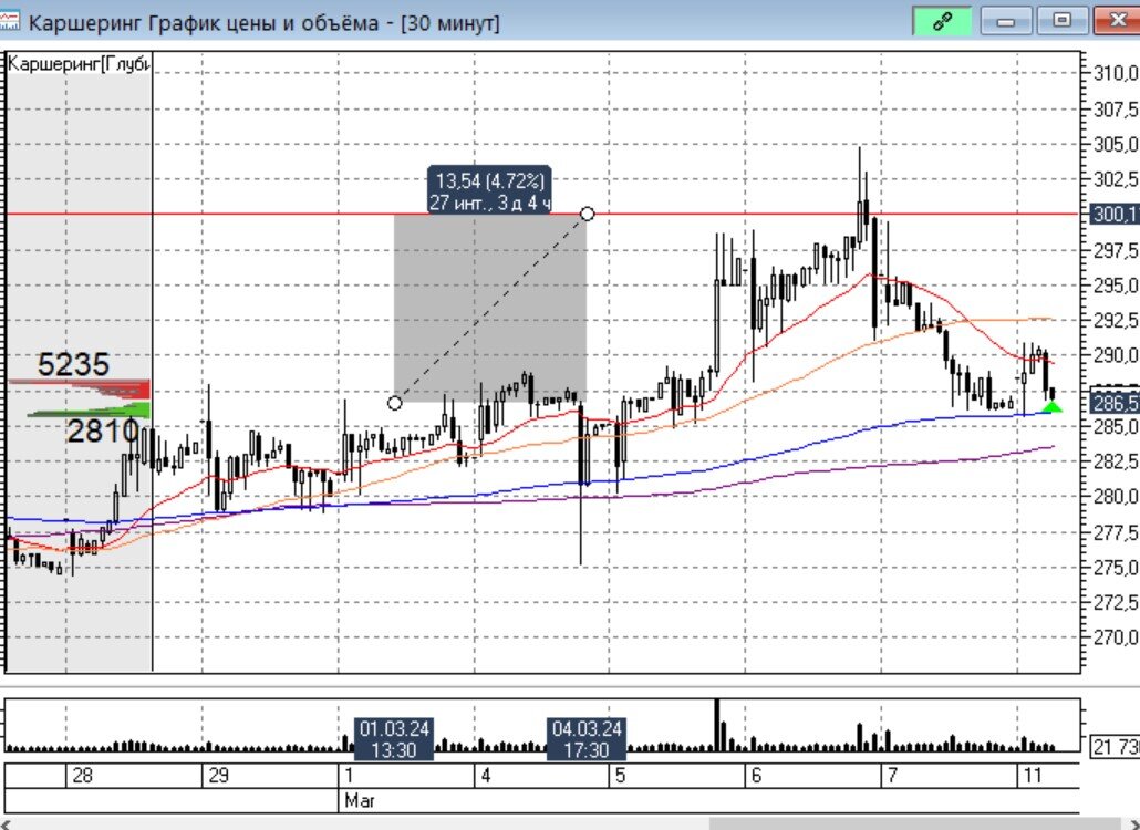 На коррекции цены покупаем акции Каршеринга, профит-прогноз 4,7% на уровне предыдущего максимума цены.