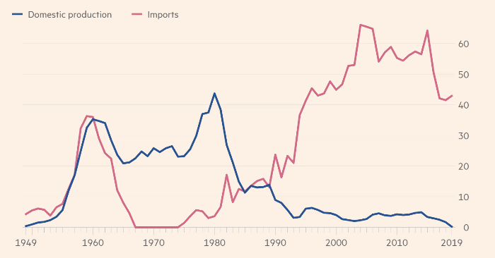 Показатели производства и импорта урана в США. Источник: The Financial Times