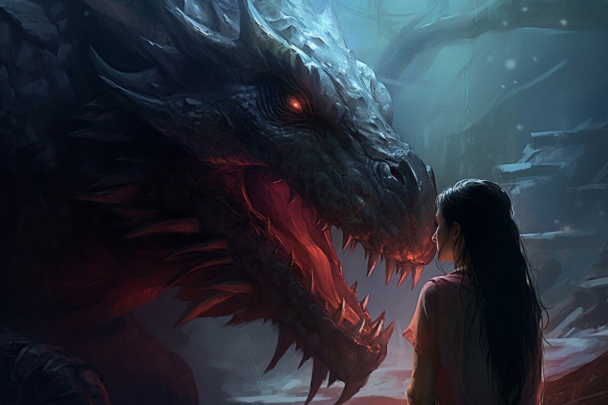 Чешуя, бритвенные лезвия клыков. И глаза — огненная лава, способная испепелить душу.