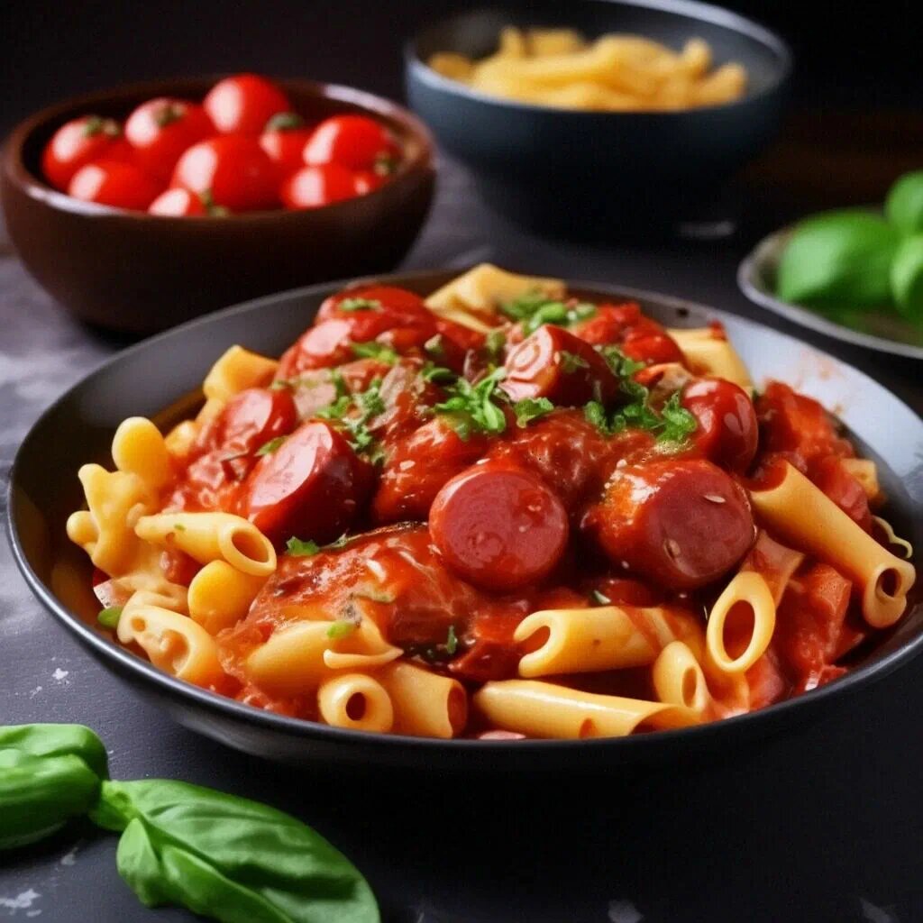 Жили-были в одной кастрюльке сосиска и макаронина. Макаронина была длинная и тонкая, а сосиска – короткая и толстая. Они были лучшими друзьями и всегда проводили время вместе. Однажды их кастрюлю поставили на плиту, и вода начала кипеть. Сосиска и макаронина начали разговаривать друг с другом, чтобы скоротать время. Макаронина сказала: “Сосиска, ты знаешь я слышала что, когда мы станем готовыми, нас подадут к столу с вкусным соусом и овощами.” Сосиска ответила: “Да, макаронина, это звучит здорово! Я так хочу попробовать этот соус, который все так хвалят.” И вот, наконец, вода закипела, и повар достал кастрюльку с сосиской и макарониной. Они оказались на тарелке, окруженные вкусным соусом и овощами. Сосиске и макаронине было очень вкусно. Однажды сосиске надоело сидеть дома, и она предложила макаронине отправиться в путешествие. Макаронина согласилась, и они начали планировать свое путешествие по разным кухням мира. Сначала они отправились в Италию. Там они попробовали пасту и пиццу с д