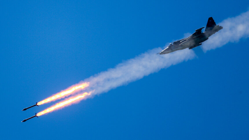 Согласно сообщению, удар был нанесен неуправляемыми авиационными ракетами С-13. Фото: Бобылев Сергей / ТАСС; Минобороны РФ; 5-tv.ru Российская авиация с помощью штурмовиков Су-25 ликвидировала опорные пункты, скопление живой силы и бронированной техники Вооруженных сил Украины на донецком направлении. Об этом сообщили в ведомстве Министерства обороны РФ. Удар по силам противника был нанесен неуправляемыми авиационными ракетами С-13 «Тулумбас» с последующим кабрированием на высоте в 25 метров. «По докладам передового авиационного наводчика все указанные цели были успешно поражены. Полет прошел в штатном режиме. После выполнения боевой задачи экипажи выполнили противоракетный маневр с отстрелом ложных тепловых целей и успешно вернулись на аэродром базирования», — уточняется в сообщении. Как рассказал летчик самолета Су-25 с позывным Трактор, после получения команды подготовка к повторному боевому вылету была осуществлена в самые короткие сроки. Взлет был выполнен с аэродрома базирования,