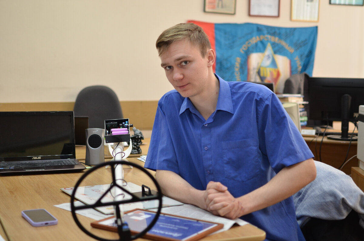 Устройство по обнаружению скрытых металлических предметов в слабо-проводящей среде участники научного коллектива ПГУ: студенты ФПТЭТ Никита Кузнецов, Роман Лытаев, Сергей Хрянин, студент ФИТЭ Даниил Бочкарёв, студентка ФППиСН Вероника Семененко, выпускник ПГУ Никита Мысин; разрабатывают и модернизируют уже более трех лет.